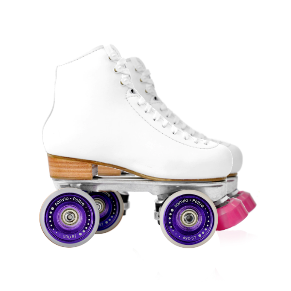 Patín profesional para primeros saltos y figuras compuesto por Bota Mora, Plancha TMG y Ruedas Sanvio Peltre