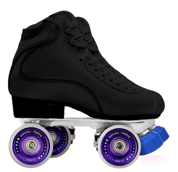 Patín profesional compuesto por Bota Mora Touch Negra, Plancha TMG Kids con freno azul y ruedas Sanvio Peltre